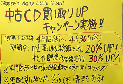 中古CD買い取りUPキャンペーン実施!